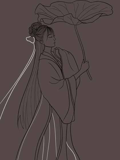 唯美古风美人插画——荷叶罗裙一色裁,芙蓉向脸两边开