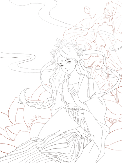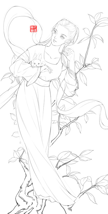 古风美女线稿