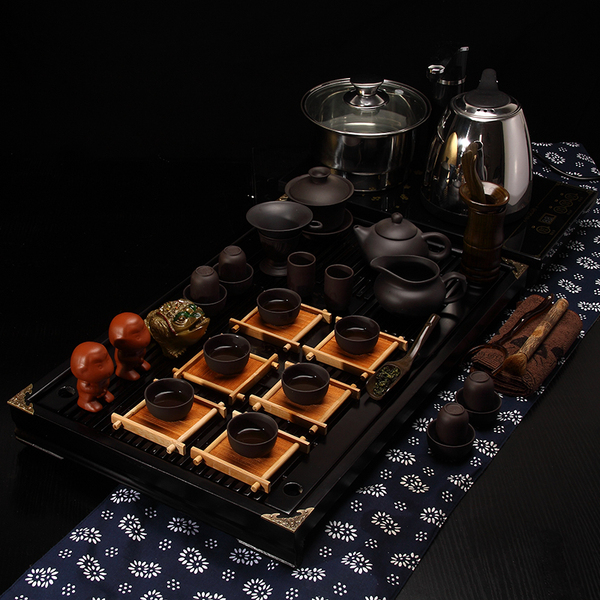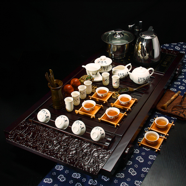 茶具套装鸡翅木中式功夫茶盘家用全自动泡茶电茶炉