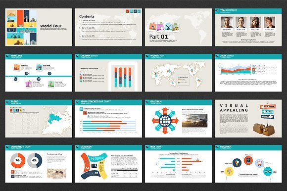 世界景点卡通风格PPT模板
