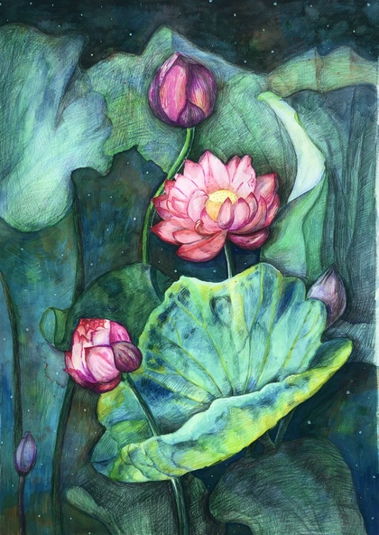 水彩手绘荷花
