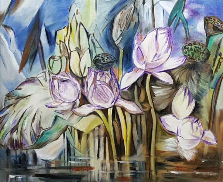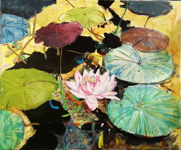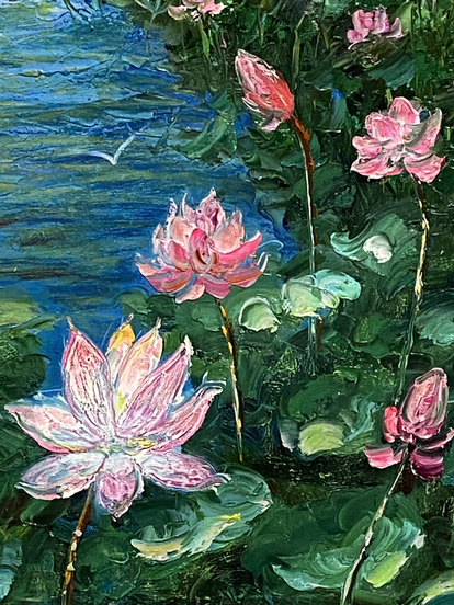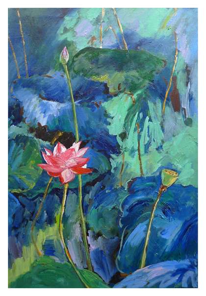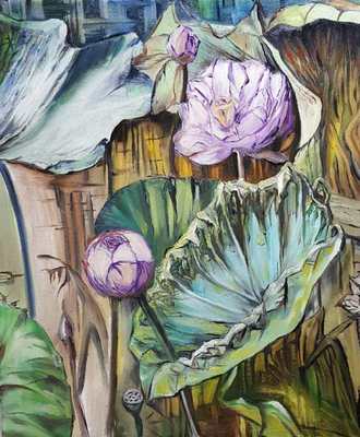 油画《荷塘》作者:果酱女王-俞果
