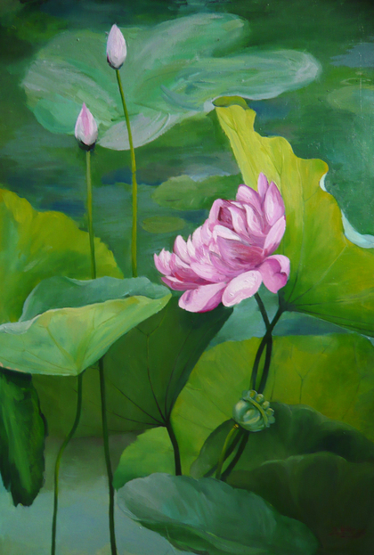 《清荷》原创布面油画