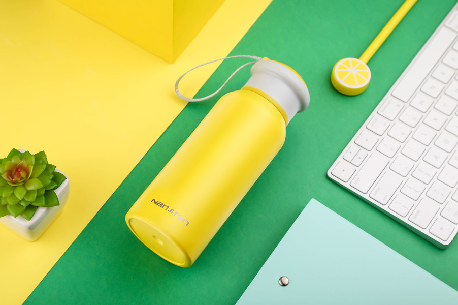 保温杯 杯子 运动 撞色 清新 色彩搭配 黄色水杯