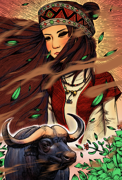 少数民族插画|佤族少女