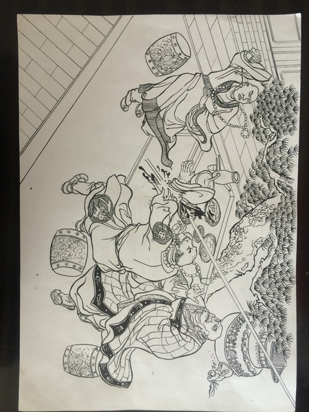 手绘水墨插画练习关公游园图【塑新社潘纪坤】