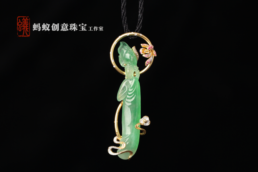 蚂蚁原创设计| 18K金镶嵌翡翠| 自然物语 | 吊坠