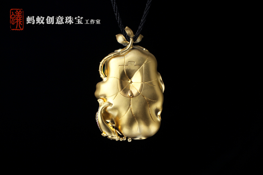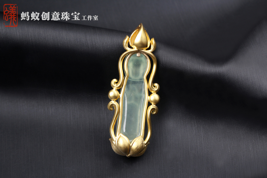 【蚂蚁创意珠宝工作室】K金镶嵌翡翠荷叶吊坠