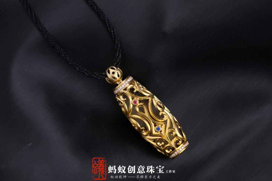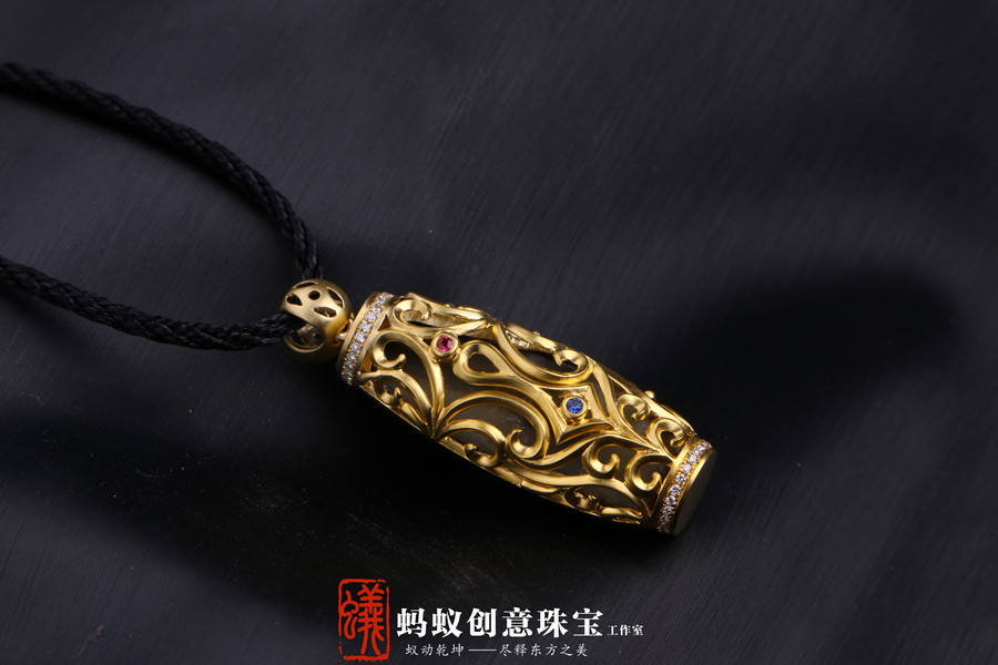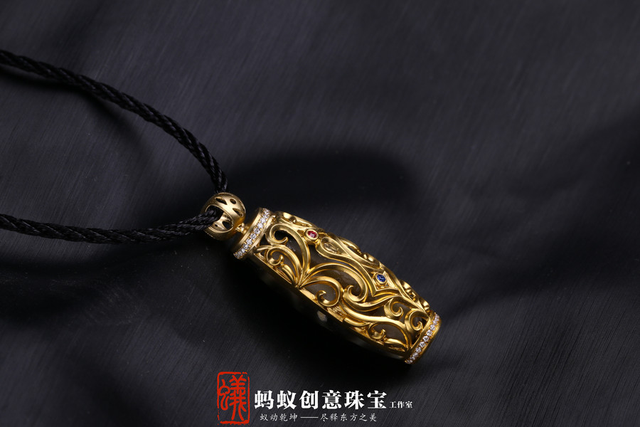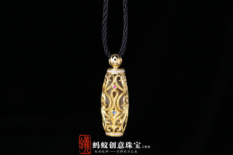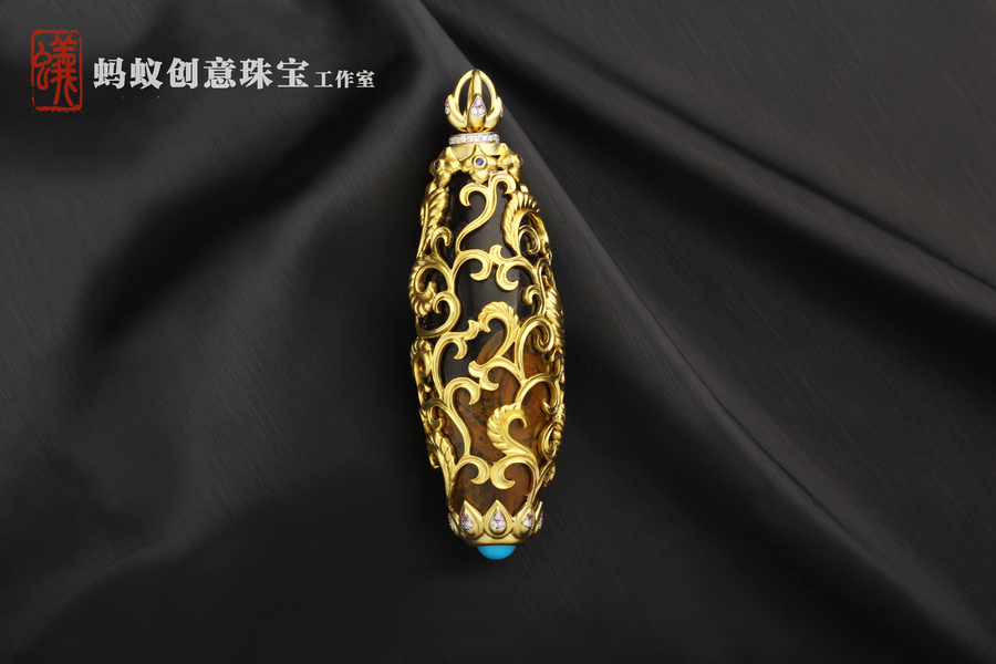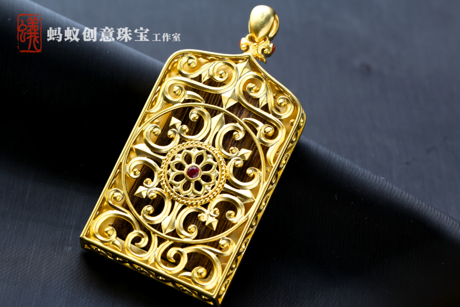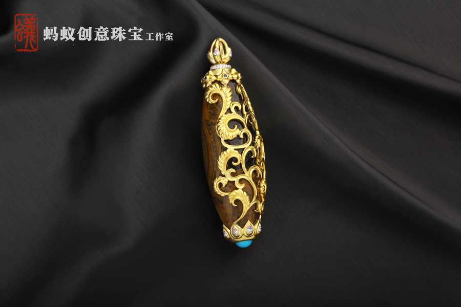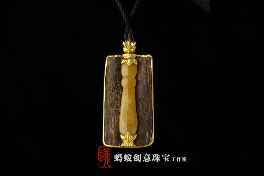 蚂蚁珠宝·原创设计| 18K金镶嵌沉香| 佛牌吊坠