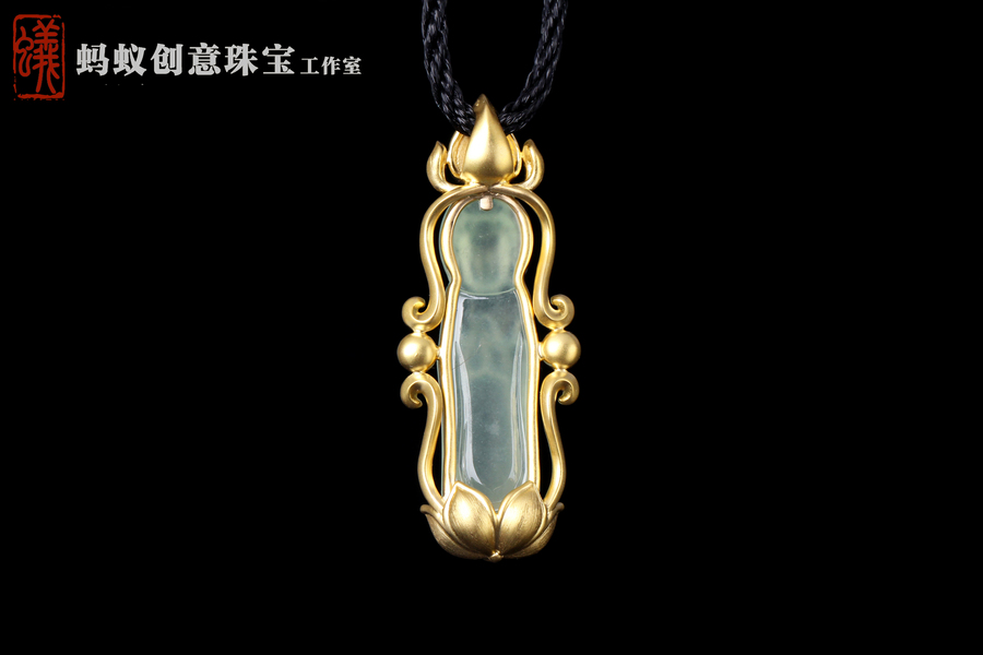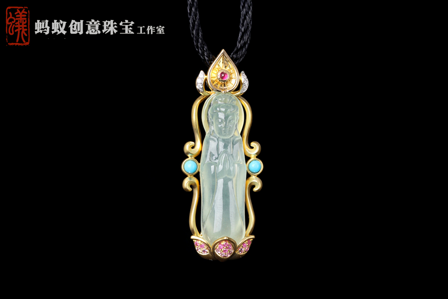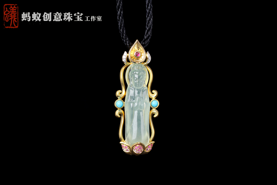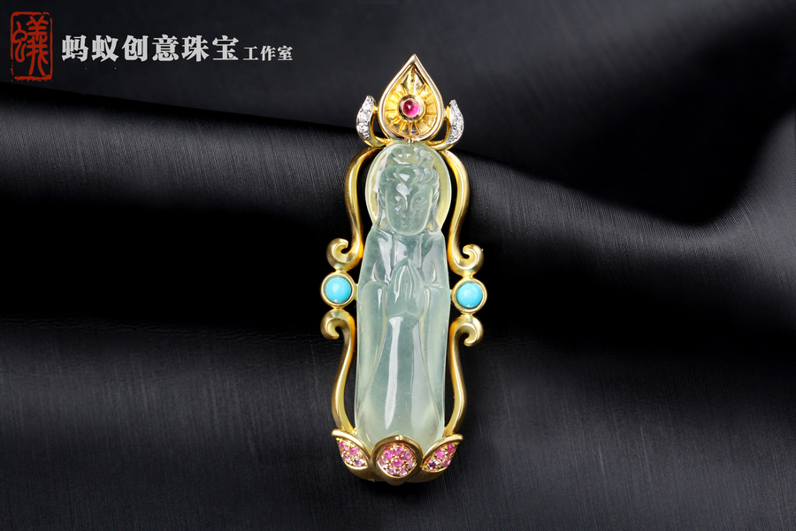蚂蚁原创设计| 18K金镶嵌翡翠观音吊坠