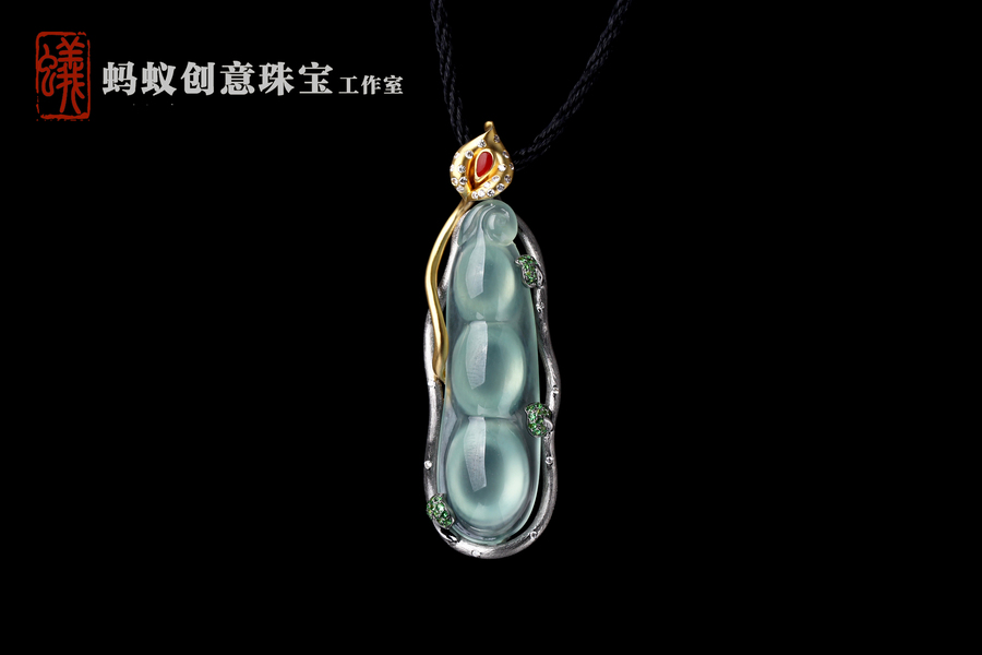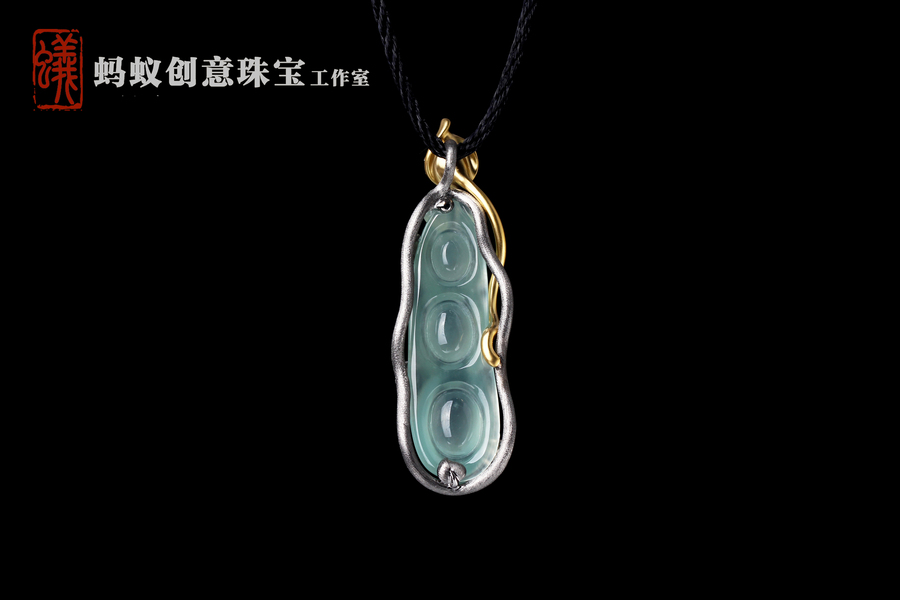 【蚂蚁创意珠宝工作室】马蹄莲翡翠四季豆吊坠