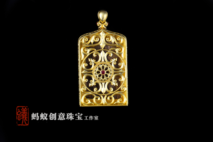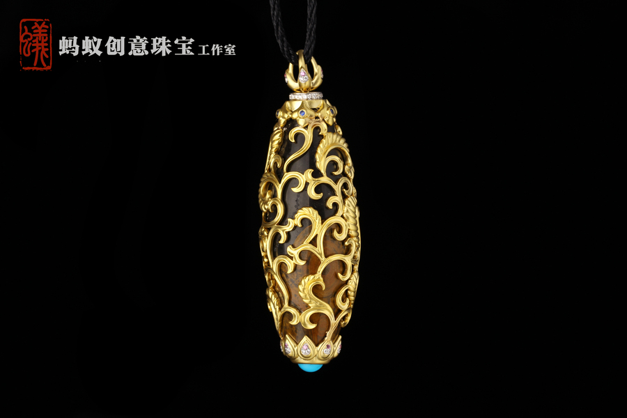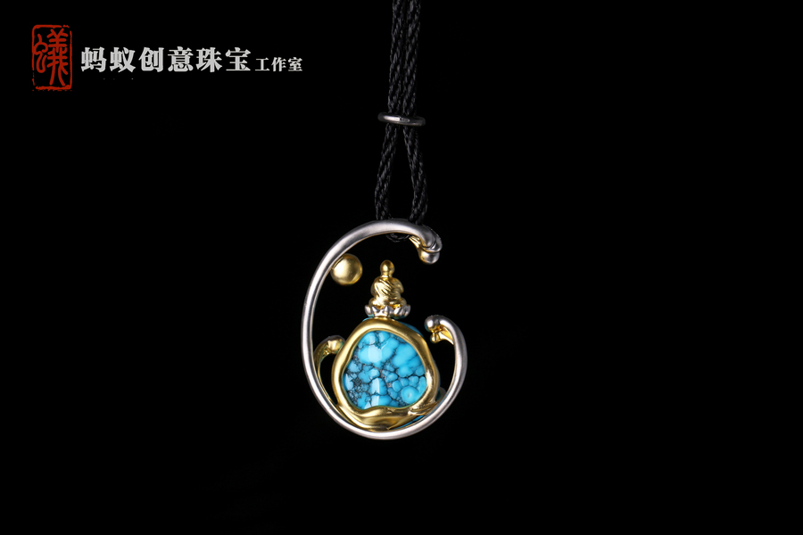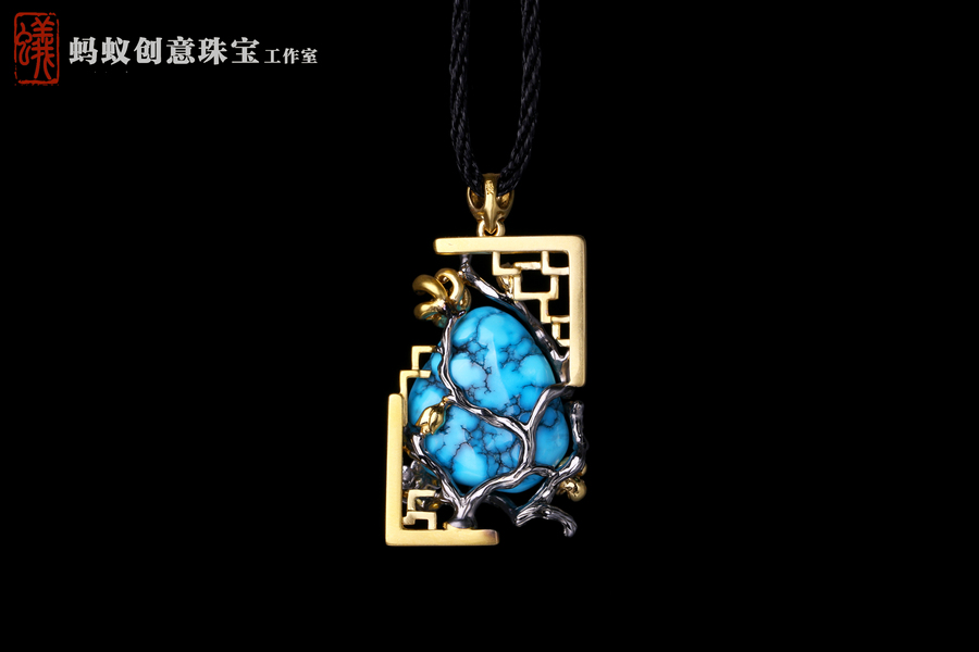 蚂蚁原创设计| 国风花窗松石吊坠 |18K金镶嵌绿松石