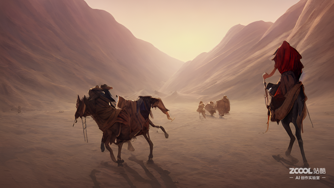 #AI创作实验室#丝绸之路,沙漠中的猎杀时刻