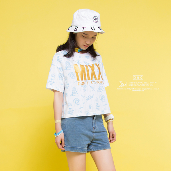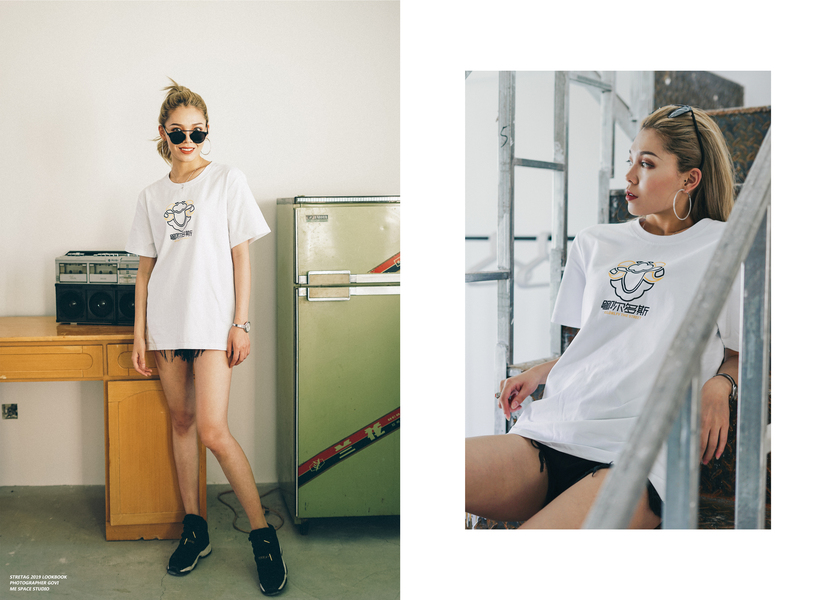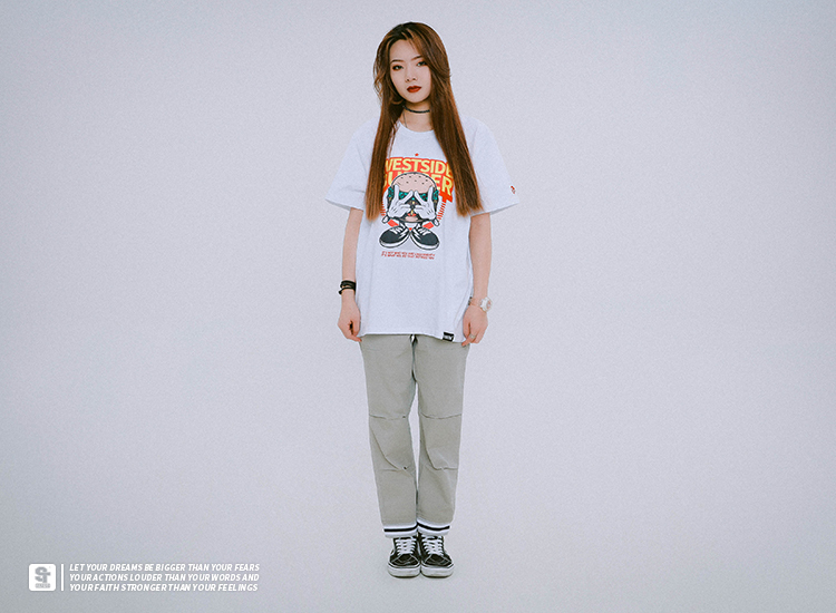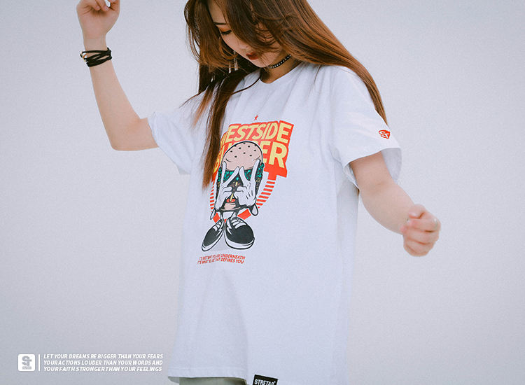 STRETAG潮牌2019夏季新品白色印花汉堡T恤男女原创半袖