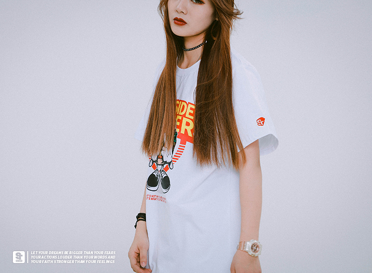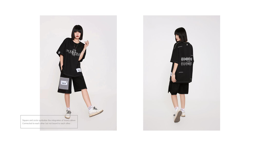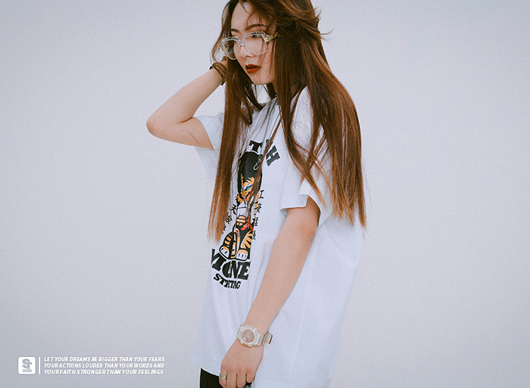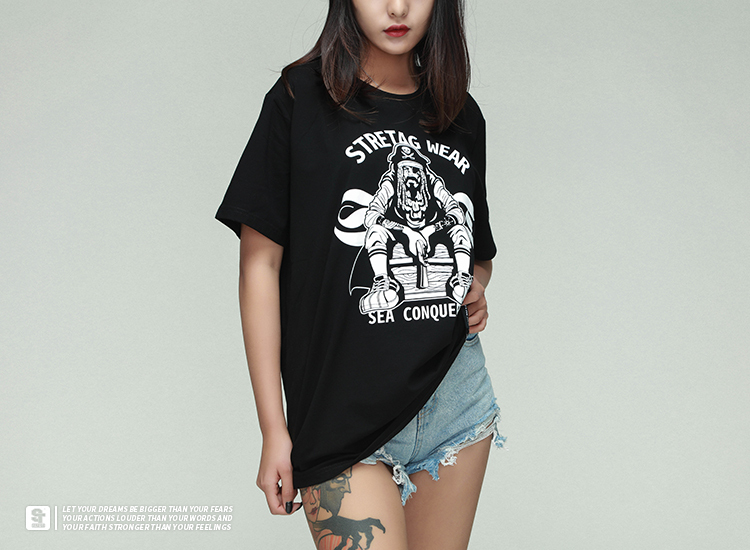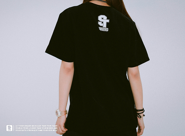 STRETAG2019夏季新款圆领黑色印花潮流情侣短袖T恤