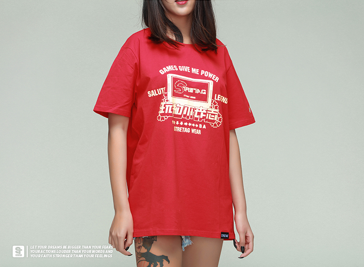STRETAG潮牌夏款嘻哈宽松圆领打底衫情侣男女款短袖T恤