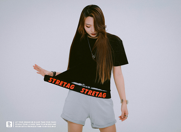 STRETAG2019春夏新品修身女款半袖T恤设计款棉T恤