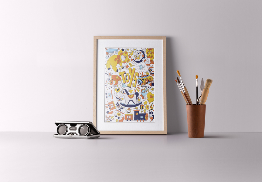 元素插画-玩具-咖啡杯包装插画礼品包装插画