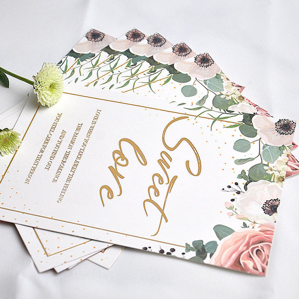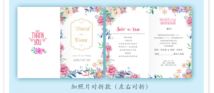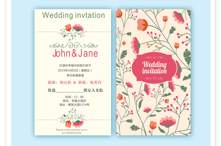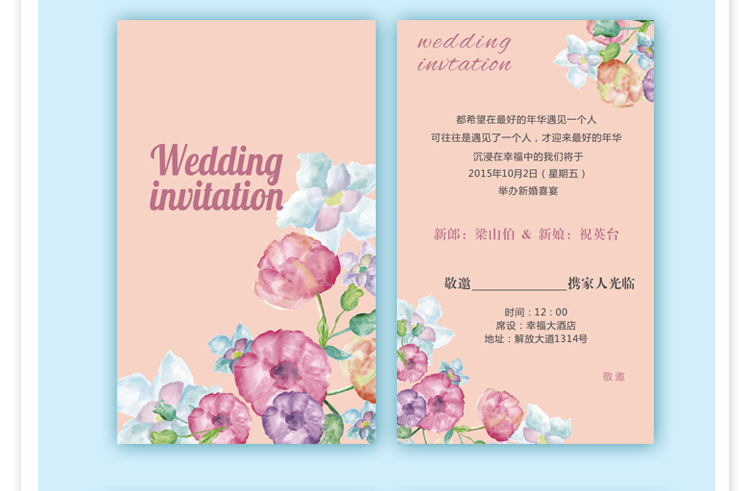 手绘花卉卡通婚礼请柬 浪漫创意邀请函