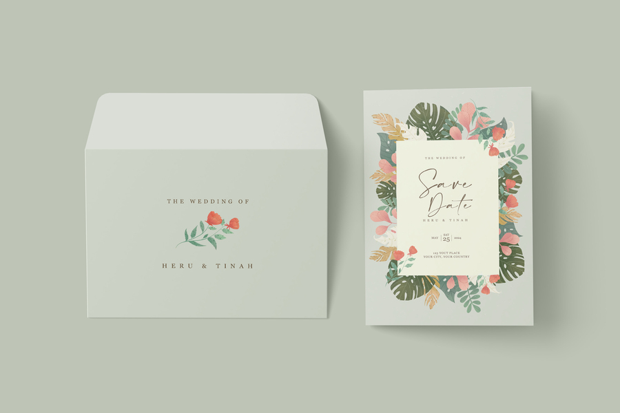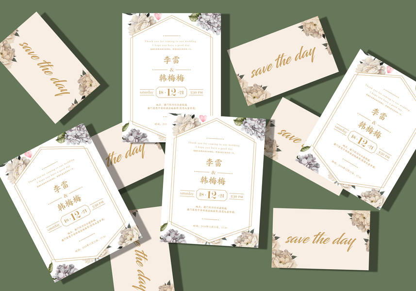 婚礼邀请函设计 - 植物肌理插画