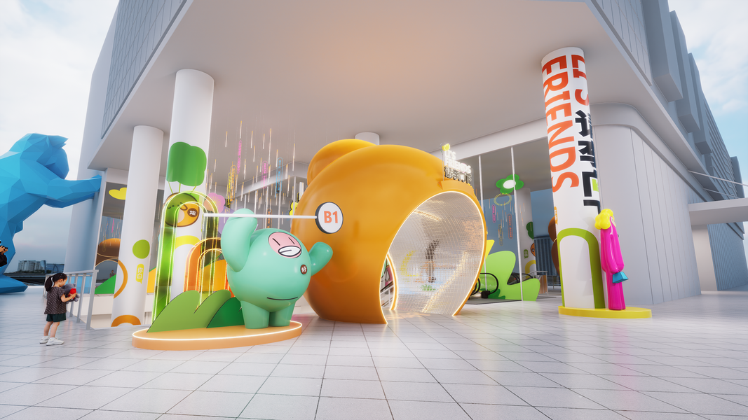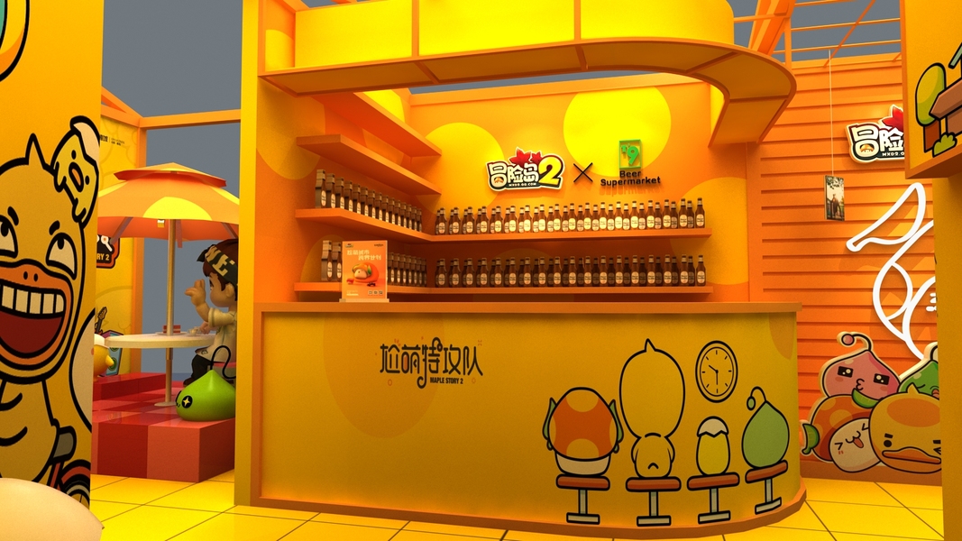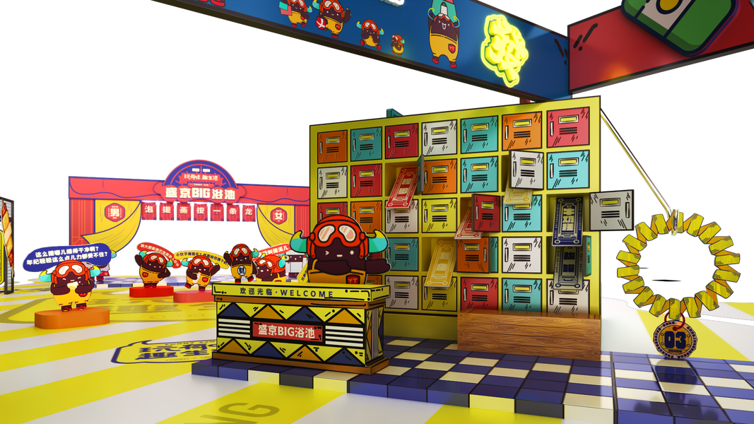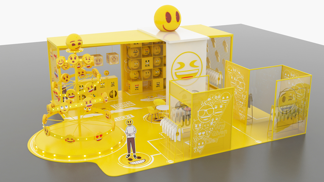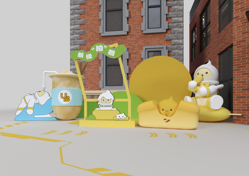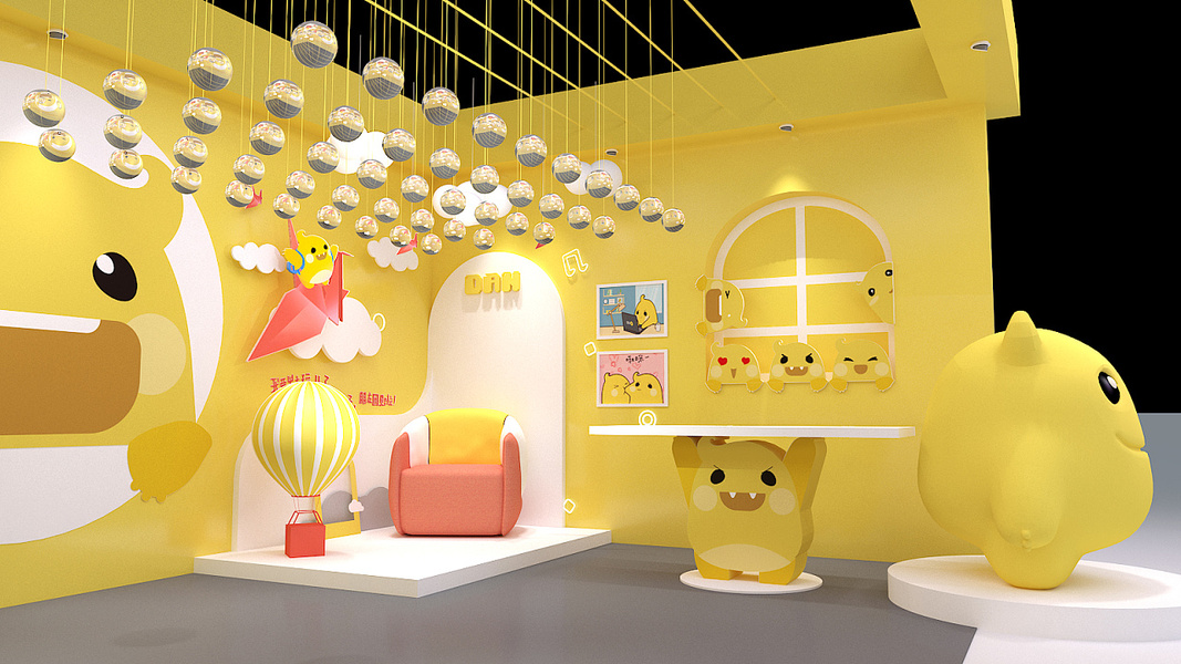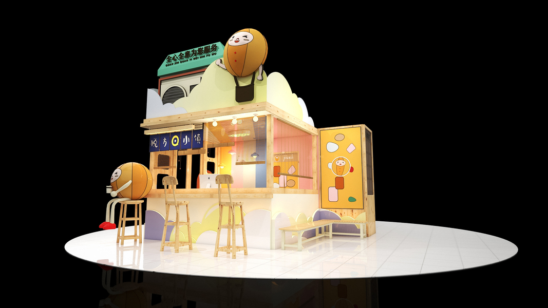 美团快闪店 展厅 展位美陈DP点 3D效果图设计与现场图