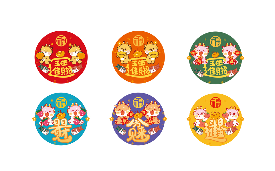小飞龙IP卡通形象插画贴纸挂件龙年福字 可独家授权