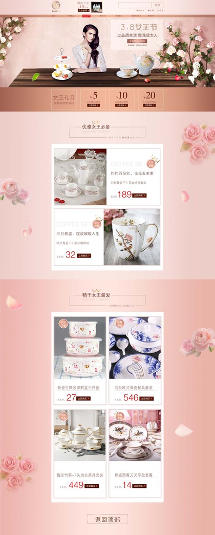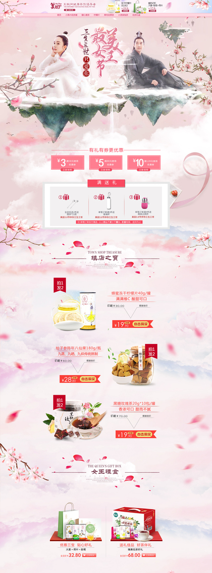 花茶天猫店首页常规页面马卡龙浪漫甜美花瓣