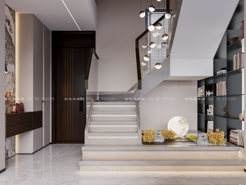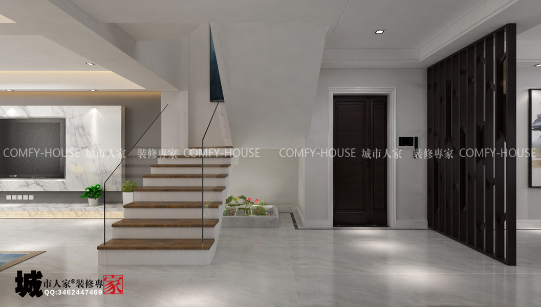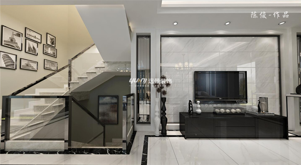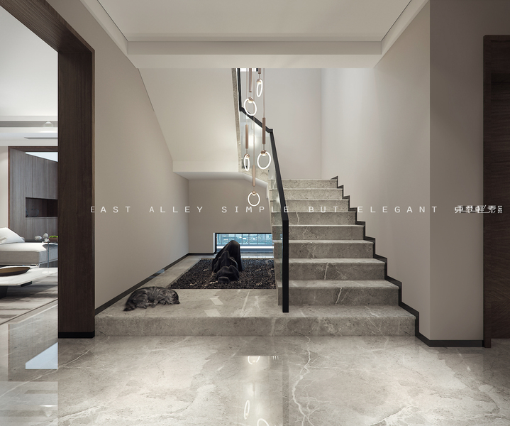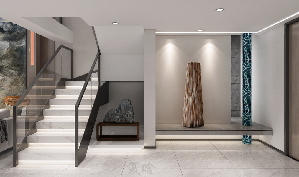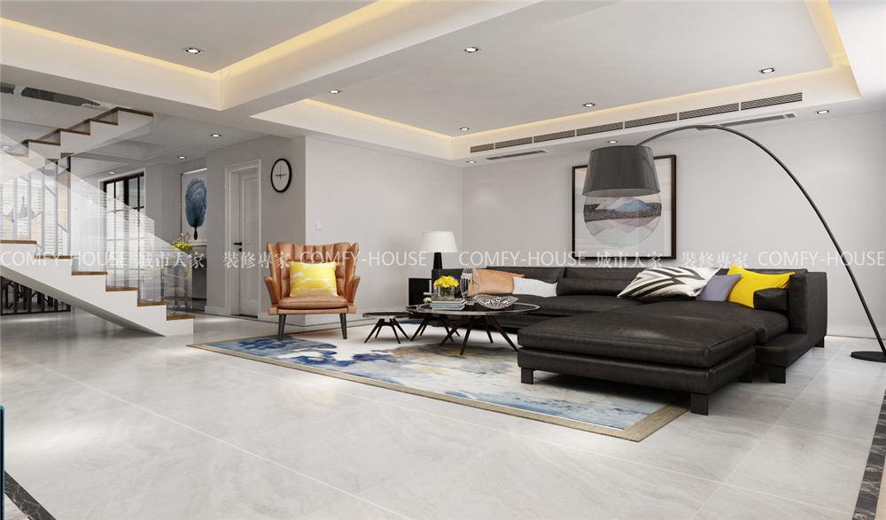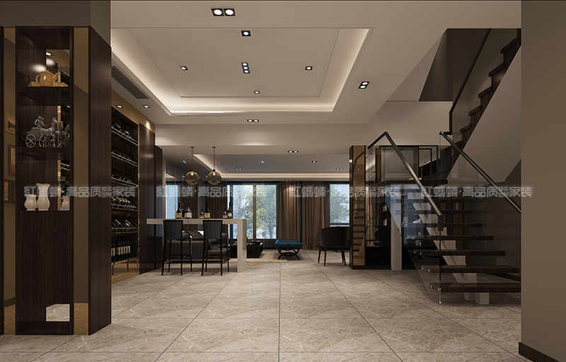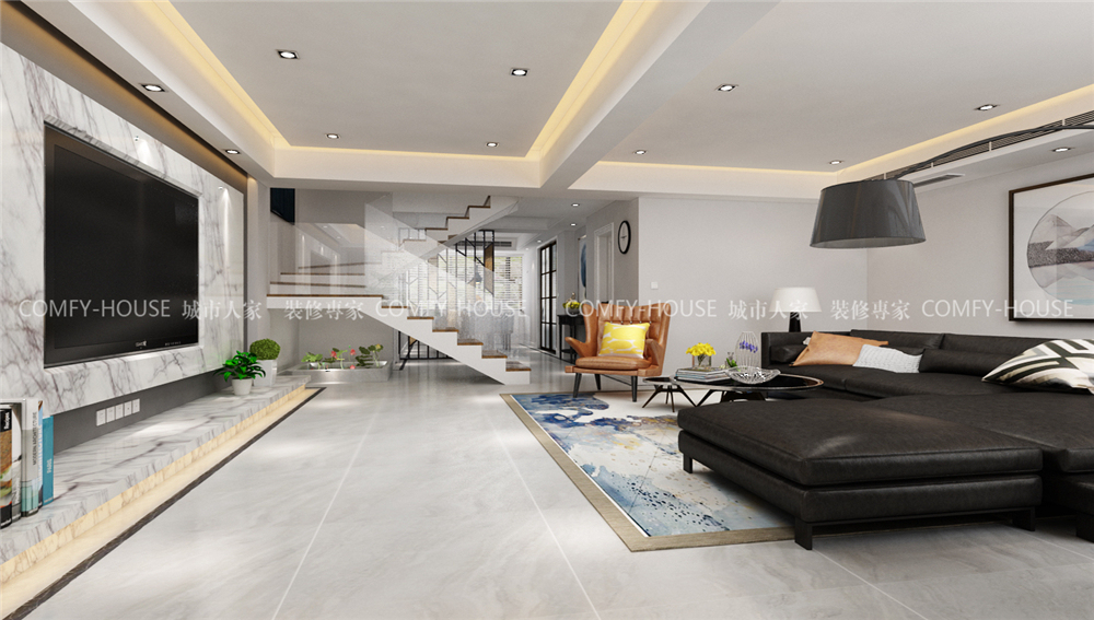 金辉泊舍叠拼别墅装修|现代简约时尚设计效果-天古装饰