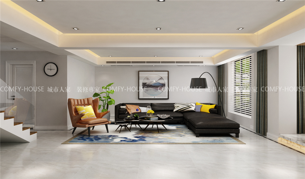 南滨路金辉泊舍叠拼别墅装修|现代简约质感格调设计图