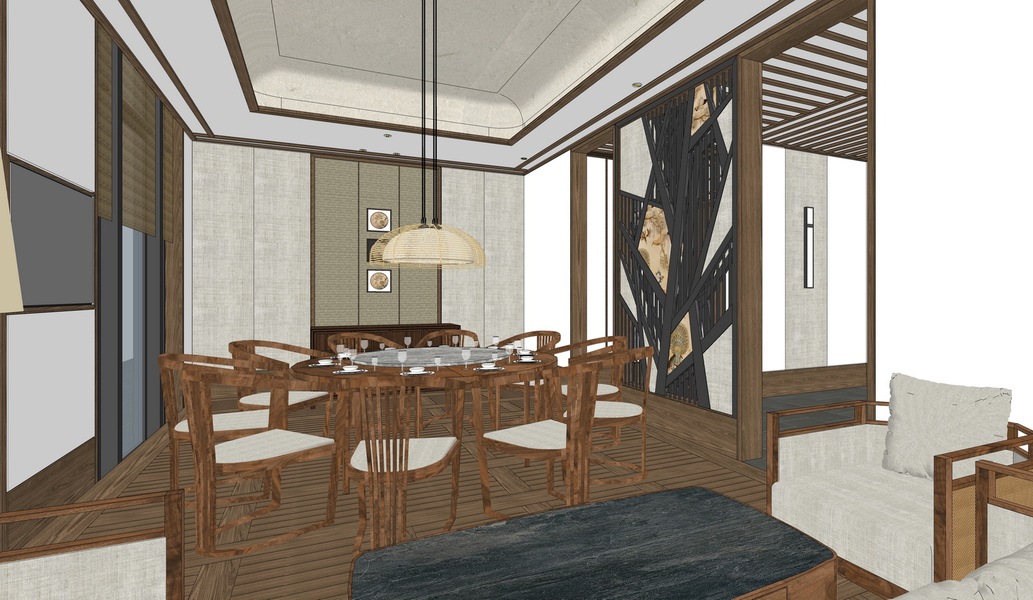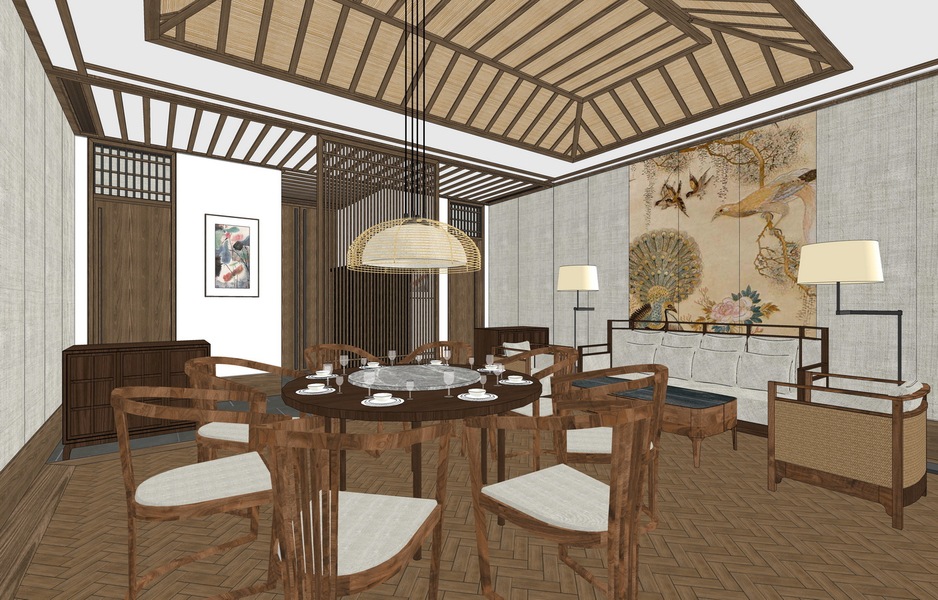 中式餐厅SU模型下载