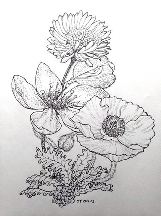 原创花卉钢笔素描手绘插画