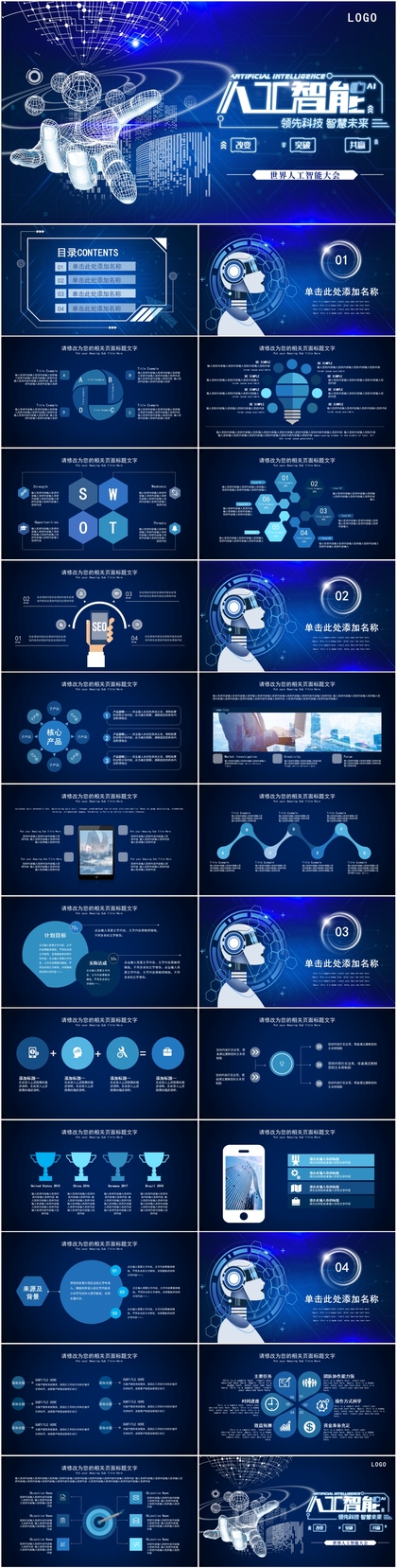 高端酷炫科技风人工智能介绍商务汇报PPT模板