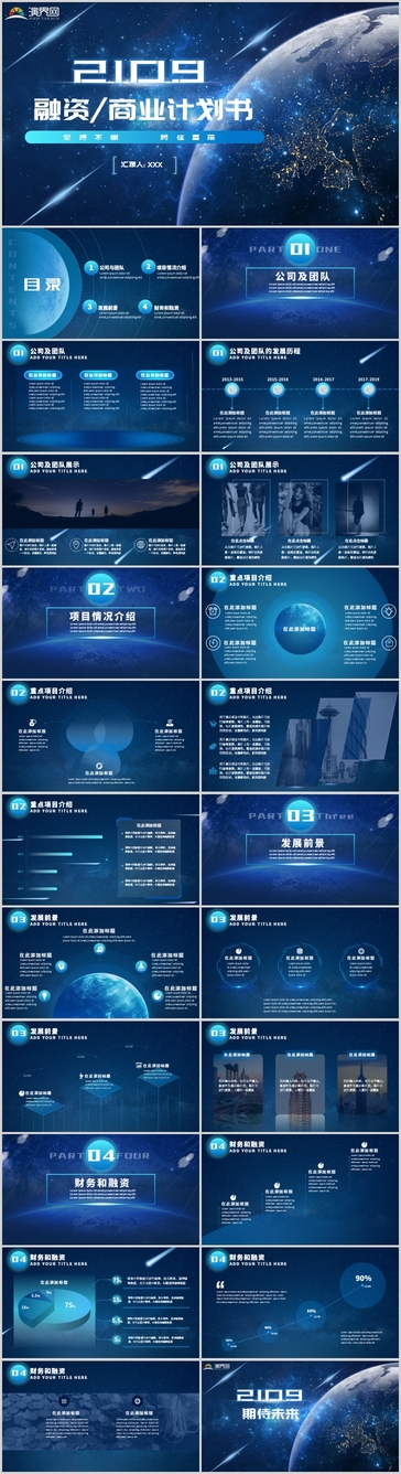宇宙星空高端科技风商业创业项目融资计划书PPT模板