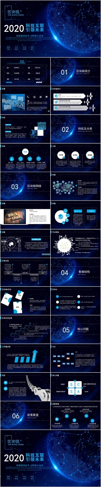 炫酷蓝色质感高科技互联网区块链文化介绍PPT模板