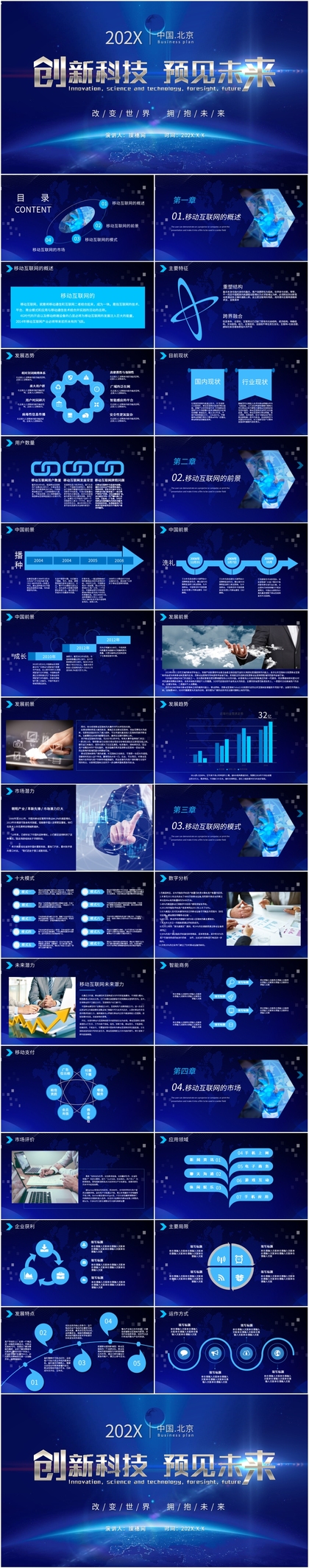 创新科技预见未来高端蓝色移动互联网PPT模板