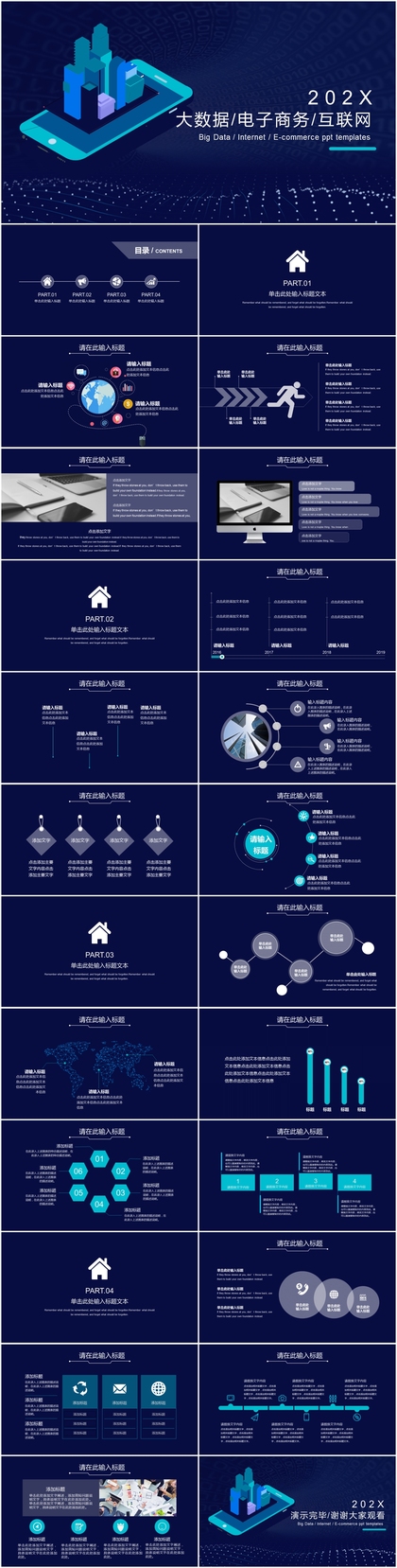 科技感大数据云技术互联网+智慧城市年终总结计划ppt