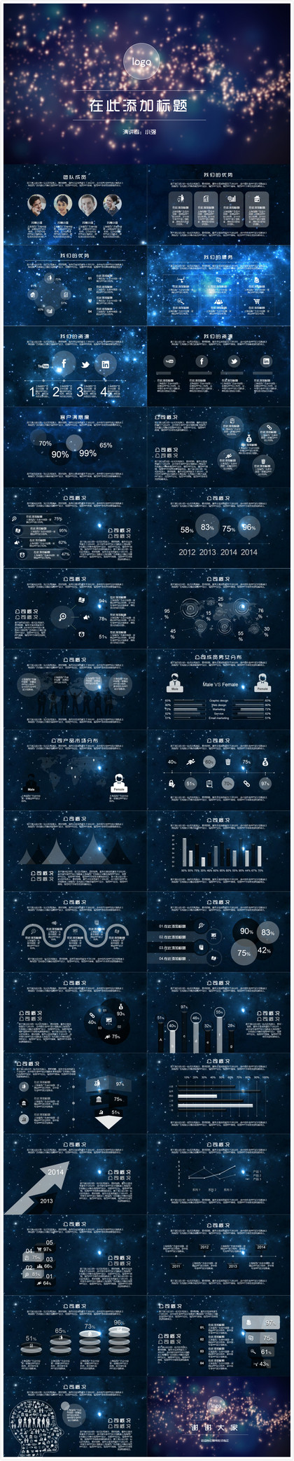 蓝色星空宇宙高科技互联网大数据云计算通用PPT模板
