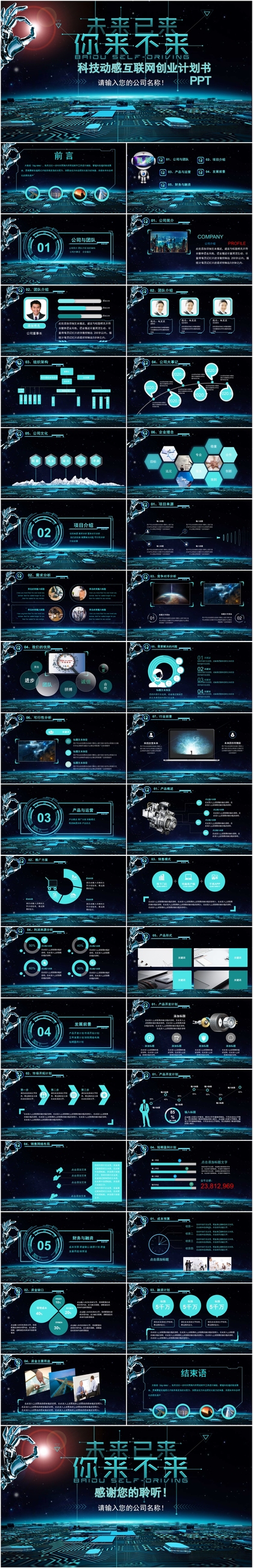 蓝色炫酷互联网高科技公司企业商业项目计划书PPT模板