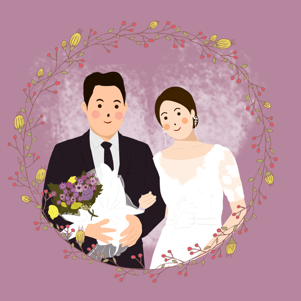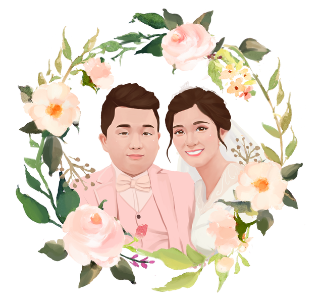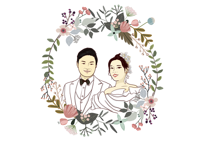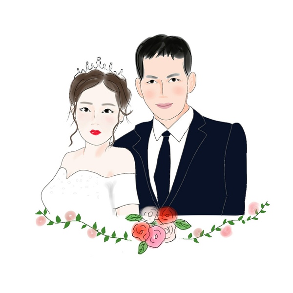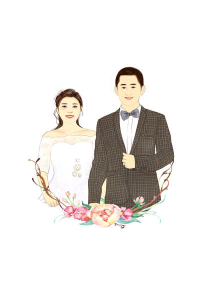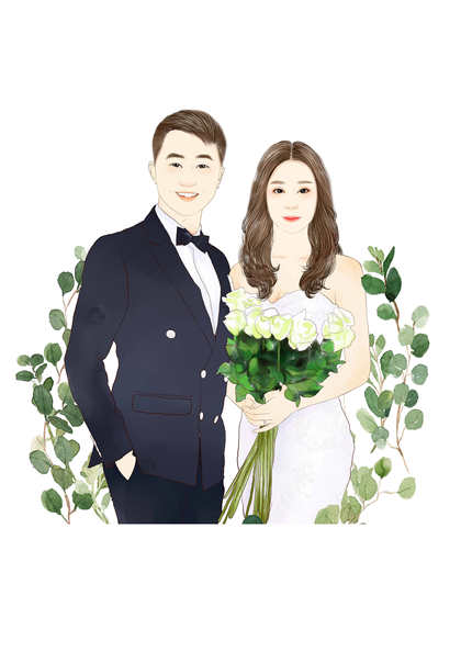 手绘水彩婚纱请柬新人肖像奥运五金王邹凯周捷婚礼画师