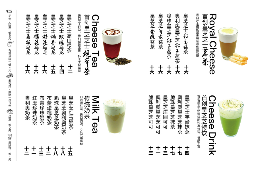 奶茶价格表设计