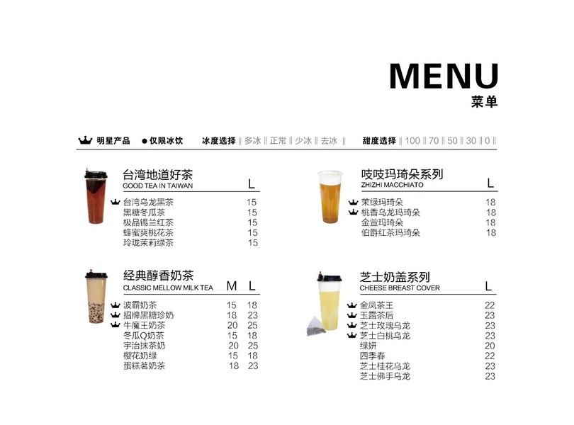 奶茶菜单