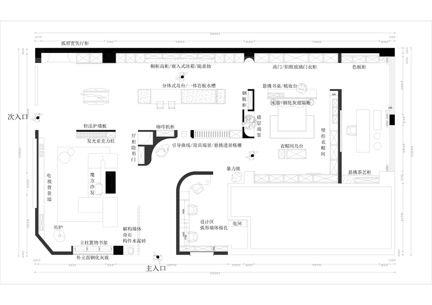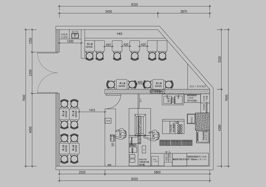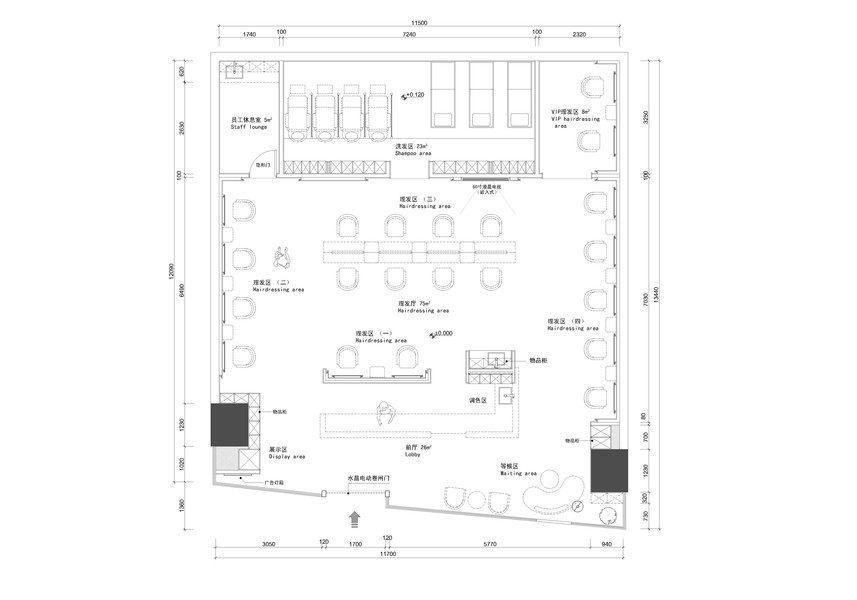尺寸设计|无限美现在简约风造型会所 理发店效果图