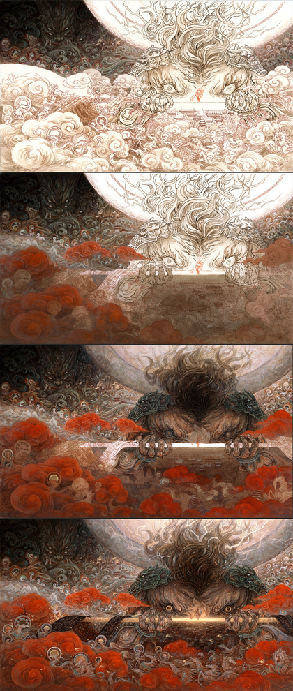 新国画|《红》与《蓝》手绘国风水墨画重彩画海报