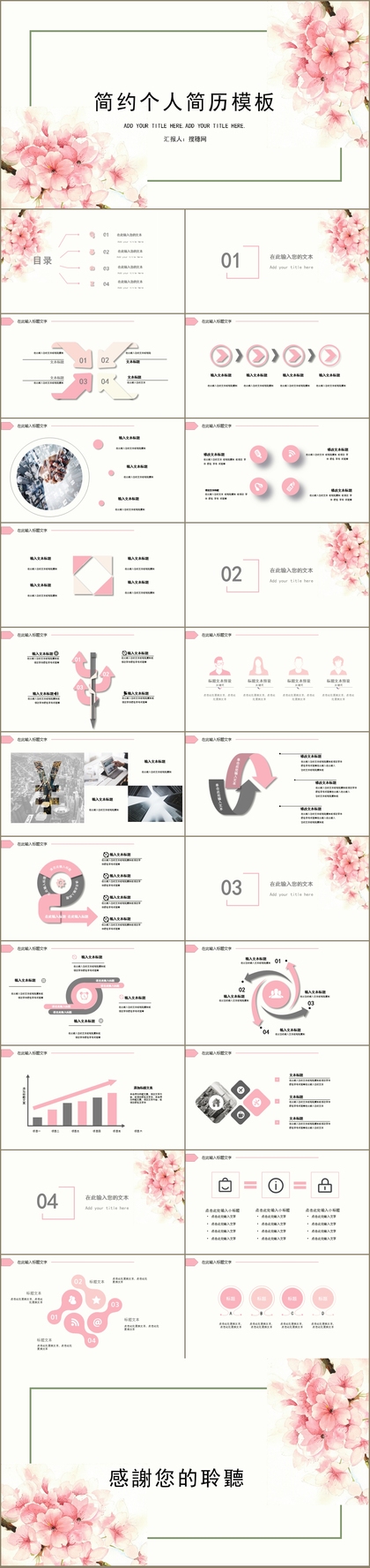 粉色唯美浪漫桃花清新简约风个人求职应聘简历PPT模板