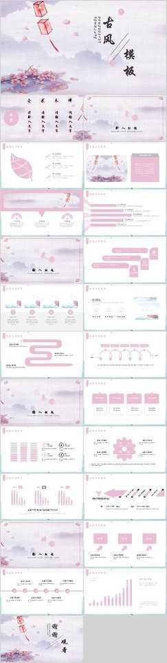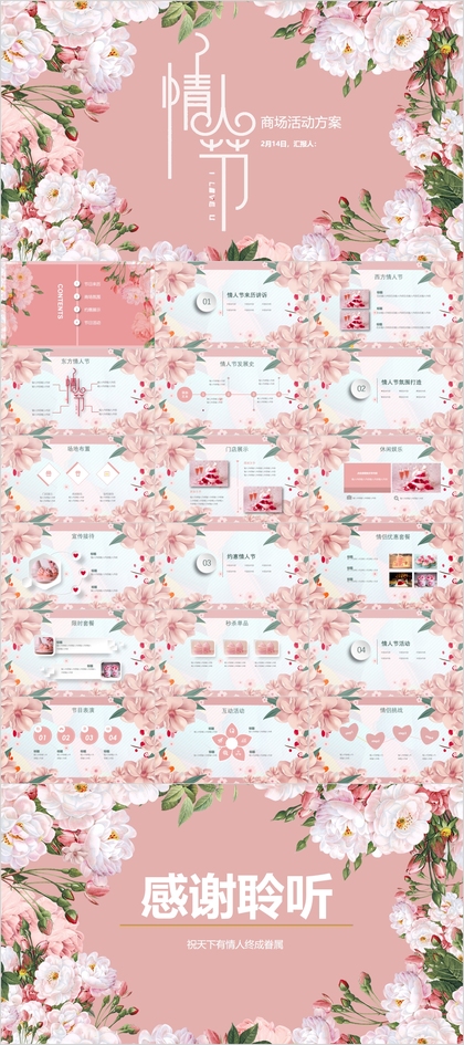 小清新唯美粉色花卉风商务工作总结汇报PPT模板