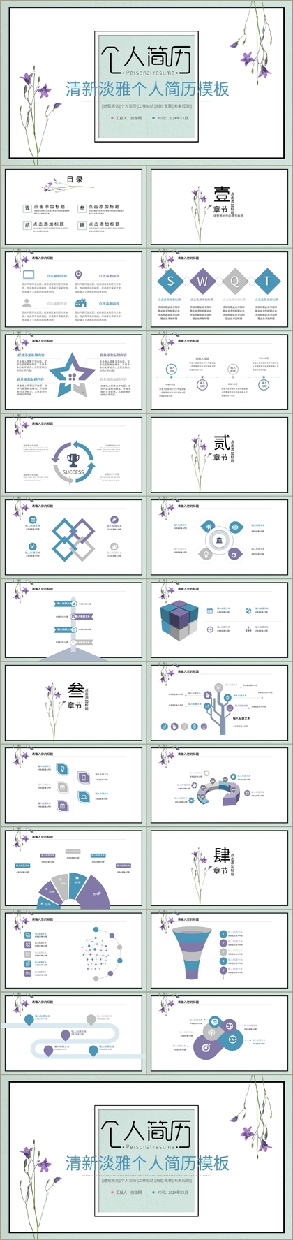 素雅简约小清新个人求职应聘简历岗位竞聘PPT模板