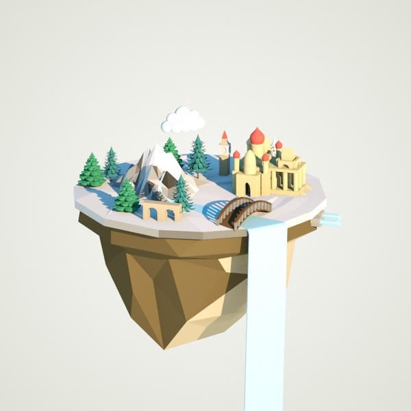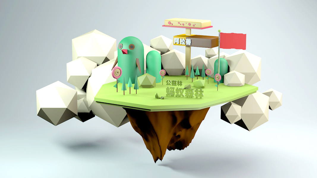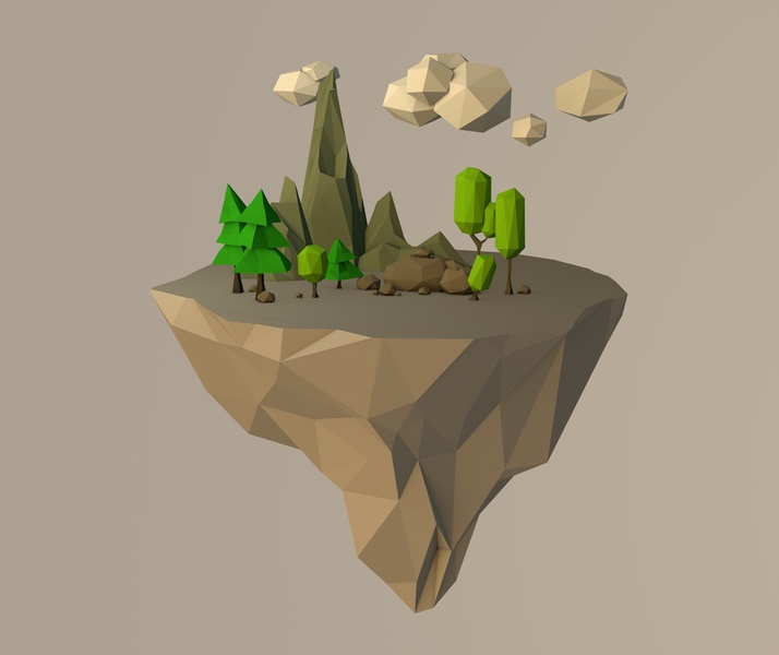Low Poly山丘森林沙漠地形剖面C4D 小格子