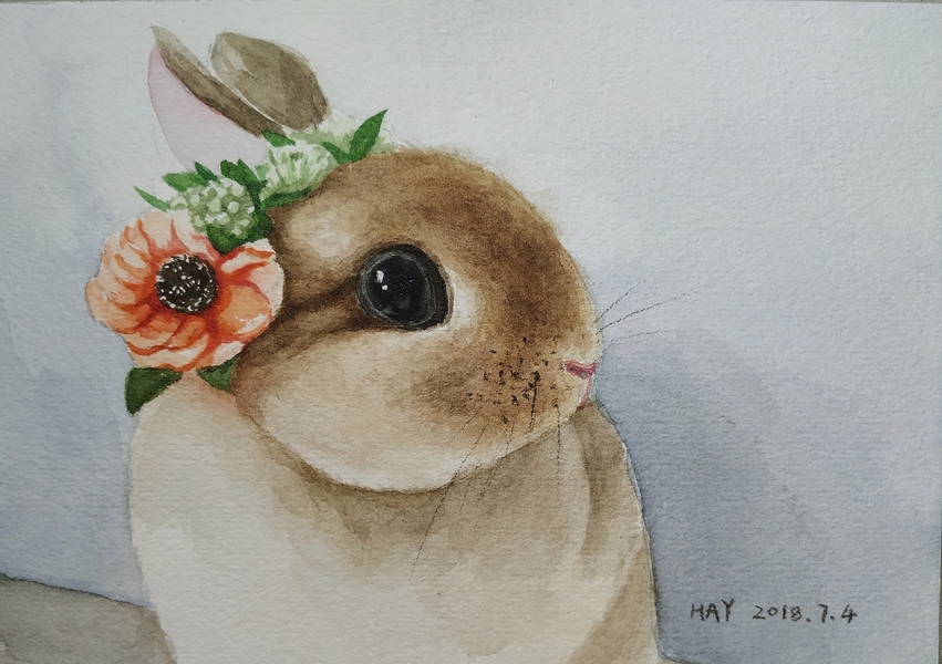 超白大叔水彩一枚萌萌的荷兰侏儒兔