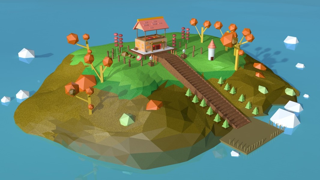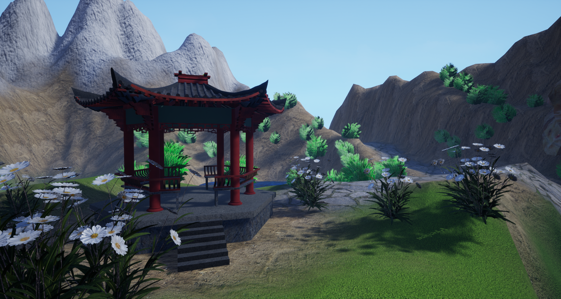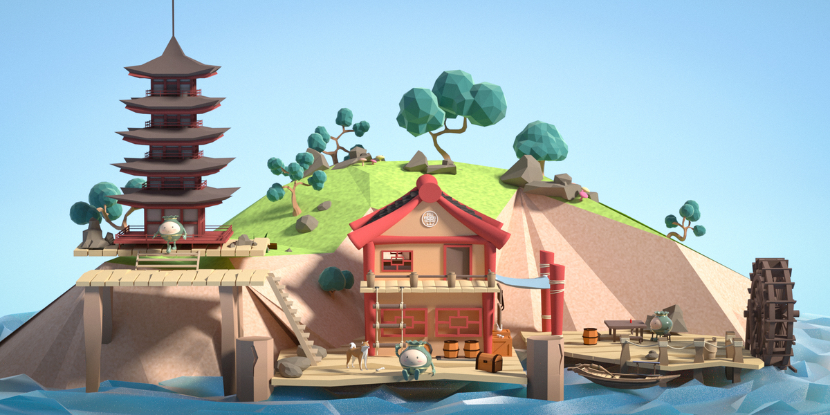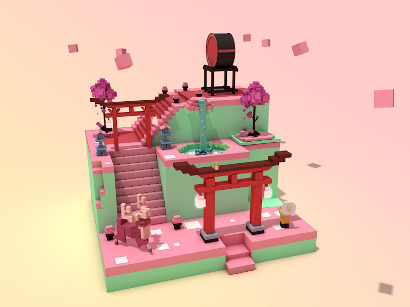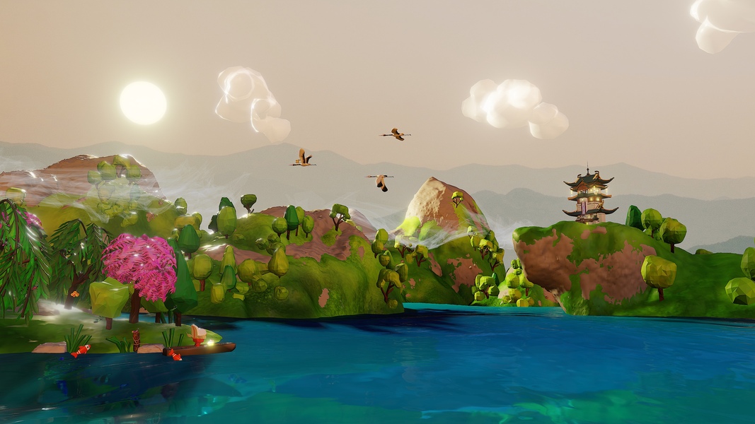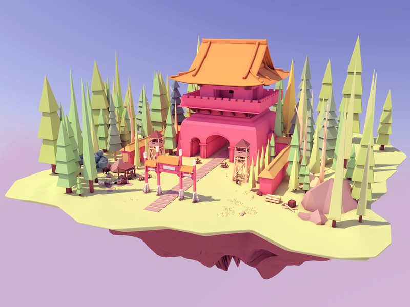 一组由中国山水-纪念碑谷插画搭建的C4D作品