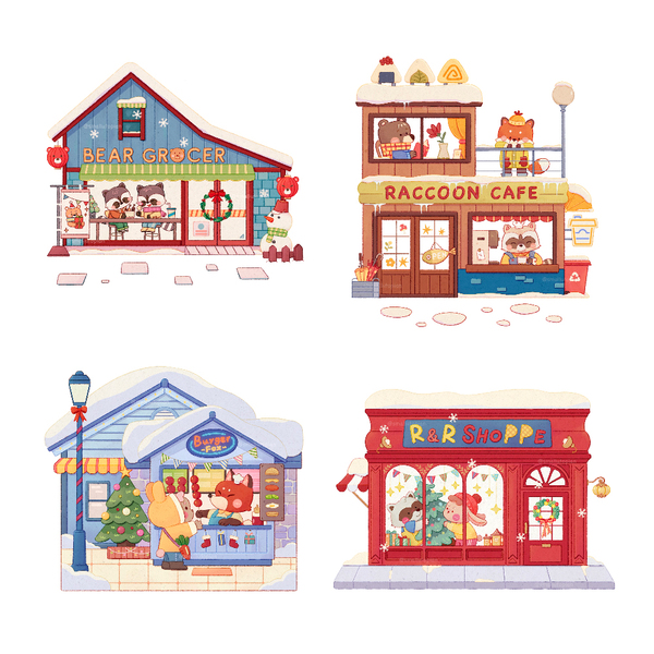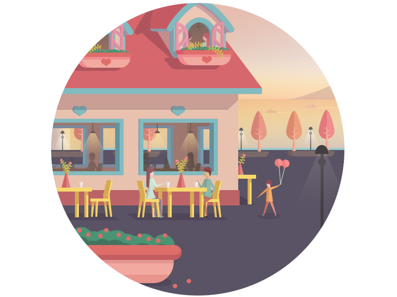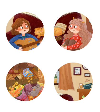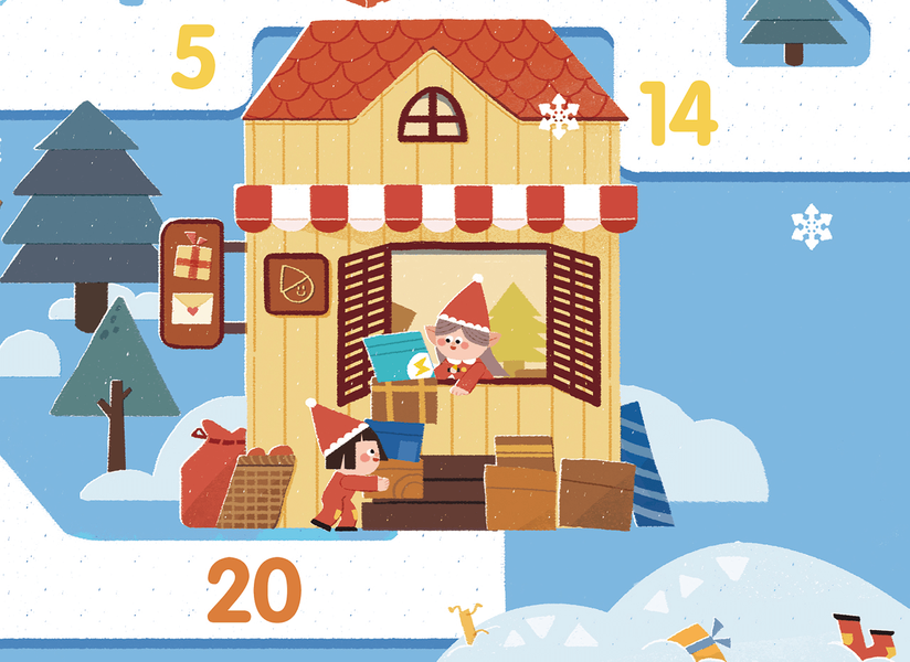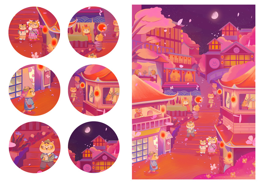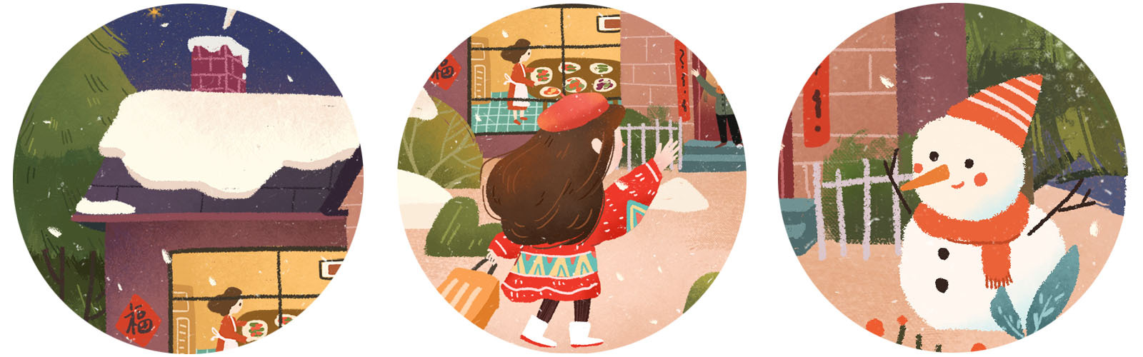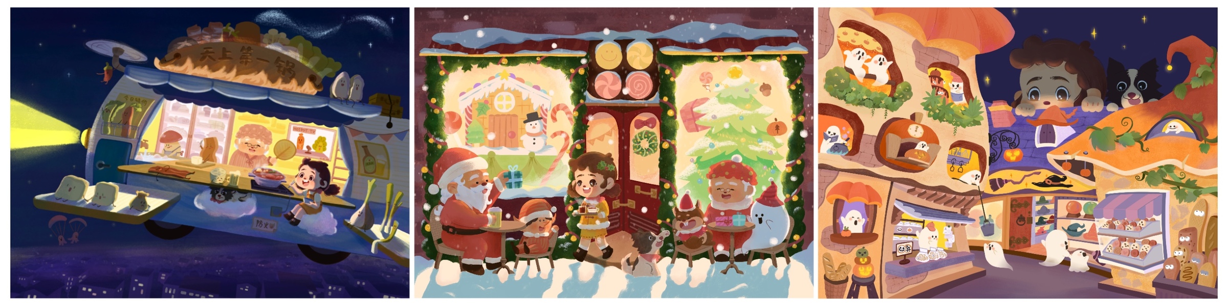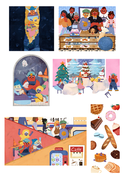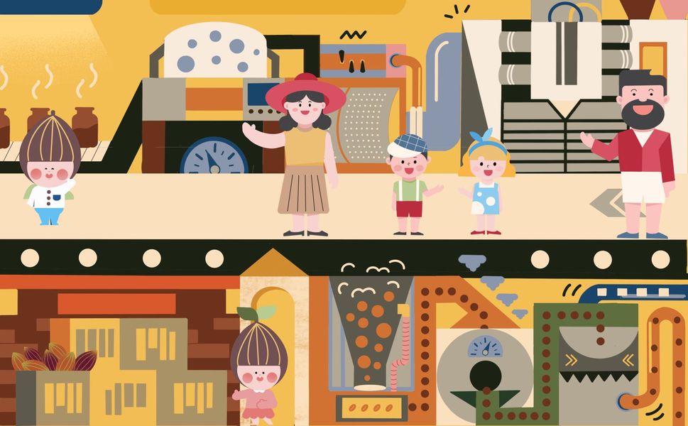 商业插画—歌斐颂巧克力小镇科普读物插图